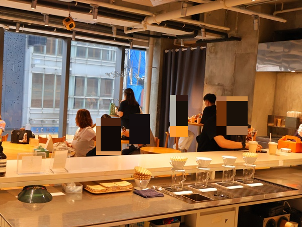 드디어 시원하게 마실 수 있는 음료가 나왔어요. 블루보틀에도 사람이 엄청 많아서 제법 기다렸어요. 내부에 자리가 많은 편은 아니어서 자리를 먼저 잡고 주문을 해야 했는데 1층에서 주문했어요. 홍콩 센트럴 블루보틀에는 외부에도 자리가 있지만 몇 개 없어요. 생각보다 로테이션은 잘되서 잠깐이라도 기다릴 수 있다면 기다리는 것도 좋은 방법이에요.